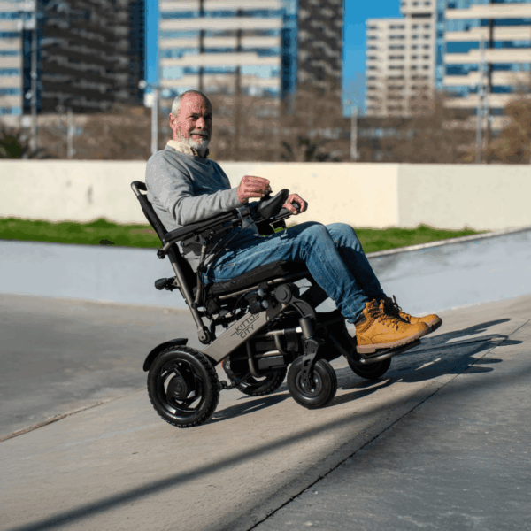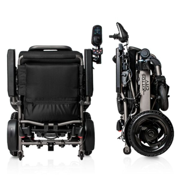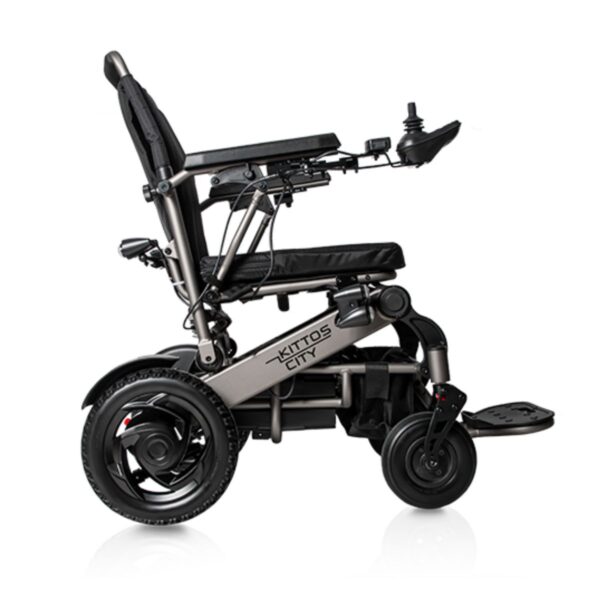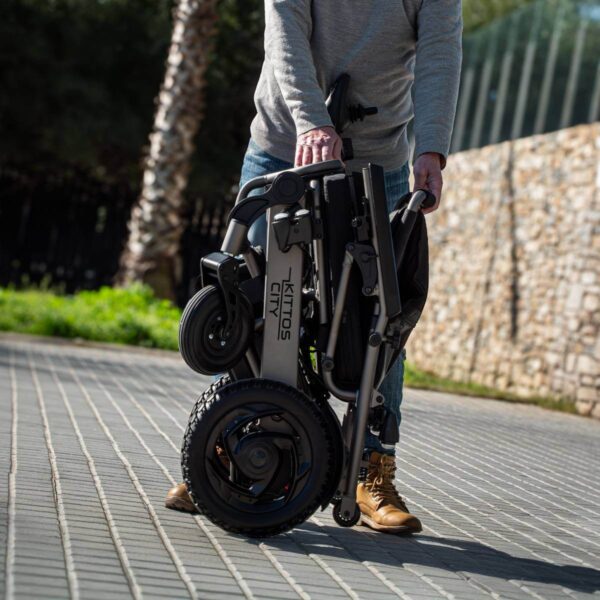 La Kittos City Plus è una carrozzina elettrica altamente maneggevole, progettata per l’uso urbano e i viaggi, grazie al telaio pieghevole che si chiude in soli 5 secondi. La versione con batteria da 20 Ah offre un’autonomia di 20‑25 km, ideale per chi vive la città senza rinunciare allo spazio interno e al comfort di guida, ora ulteriormente migliorato dalle nuove sospensioni anteriori. Il design compatto (larghezza 60 cm) consente l’accesso agevole in ascensori e corridoi stretti.