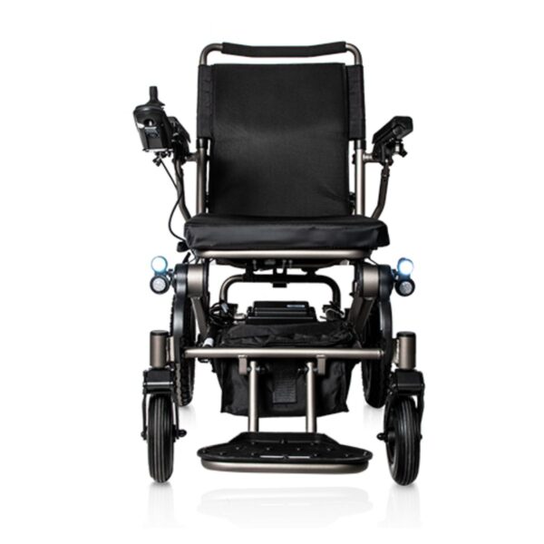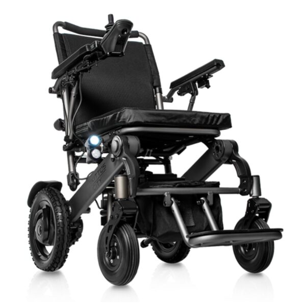Carrozzina elettrica pieghevole compatta, autonomia fino a 25 km e perfetta per spazi urbani stretti.